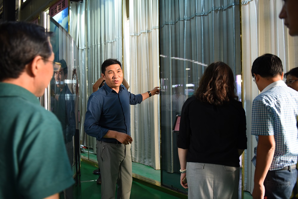 連云港城建控股集團(tuán)領(lǐng)導(dǎo)參觀江蘇景泰玻璃車間,景泰玻璃董事長李景先生及銷售總監(jiān)馬樹山先生就各個工序的產(chǎn)品進(jìn)行了講解。