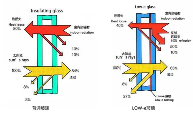 節(jié)能效果顯著:在冬季,Low-E玻璃可以反射室內(nèi)的熱輻射,保持熱量;夏季則反射外部熱量,減少冷氣流失 。